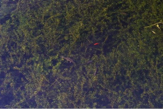恢复生态系统的重中之重在于构建“水下森林”。种下水草几个月,水域的生态系统和自净能力慢慢恢复。河道被苦草这个“水下魔术师”施了魔法般,由浑浊变得清澈见底,水质从V类水到IV类水再到III类水,从无虾无鱼到自然生长出鱼虾河蚌,又招引来各种觅食的水鸟,现在水体生态链基本平衡,水体保持常年清澈透底。