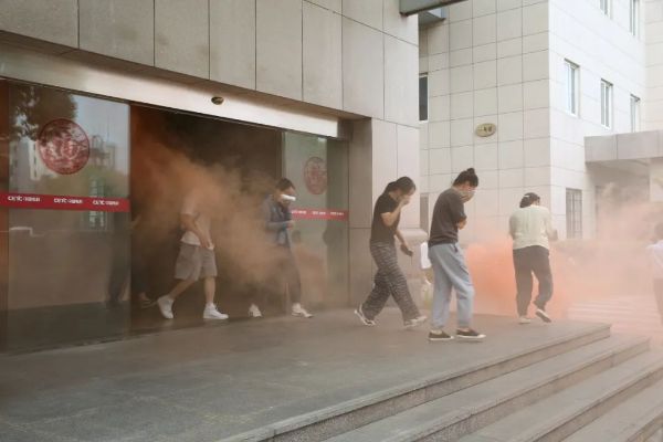 演习共分为人员疏散、初期火灾扑救(灭火器使用)及专业消防队协同作战三个环节。