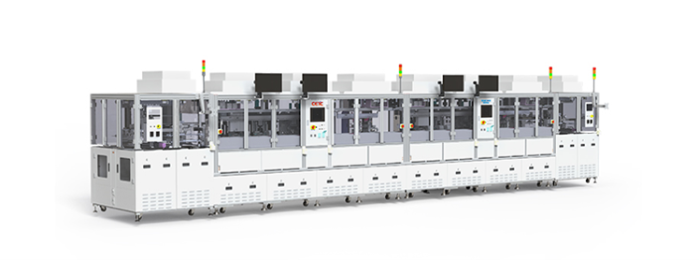 产品简介:该生产线主要用于OLED智能穿戴显示屏制程中的TP及TP-FOF邦定工艺流程。生产线由一台自动上料机、一台自动TFOG邦定机、一台自动TFOF邦定机和一台自动收料机组成。工作流程:OLED显示模组自动上料、视觉定位、ACF预贴、TP-FPC自动上料、自动对位、TFOG预压、TFOG主压、TFOF ACF预贴、自动对位、TFOF预压、TFOF主压、自动收料。