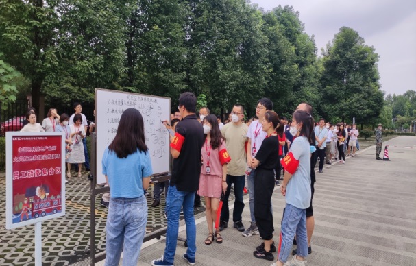 片段二:人员在引导员的带领下紧急疏散,演练总指挥、副总指挥、应急突击队及运行保障部、综合管理部、党群工作部相关人员迅速赶赴火灾现场。