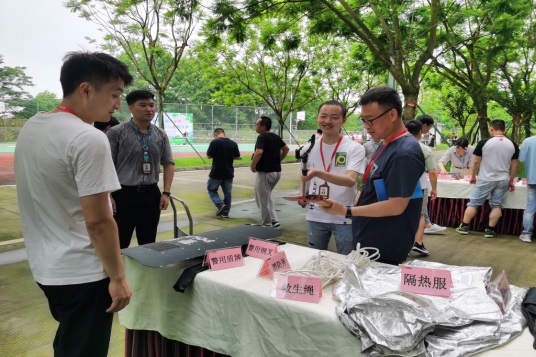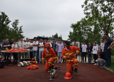 结合宣传咨询日开展了模拟火灾救援处置应急技能挑战赛,整个活动分为两个环节,培训及实操。