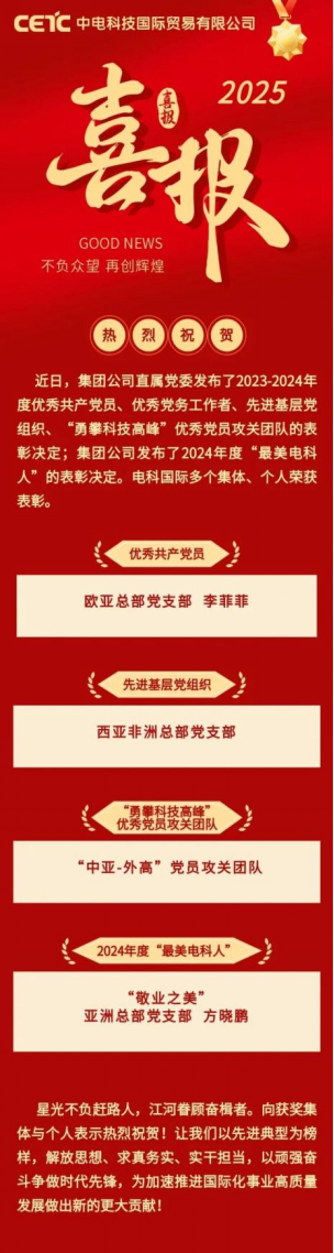 喜报丨电科国际多个集体和个人荣获集团公司表彰