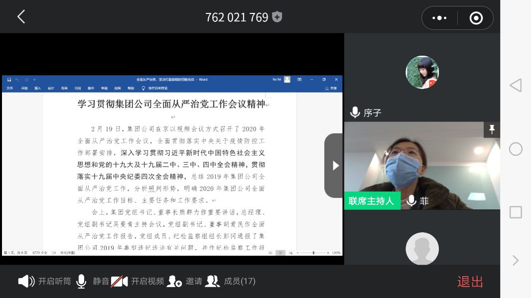 各党小组也通过线上视频会议、集体讨论等多种方式,将公司支委有关要求传达到每一位党员。